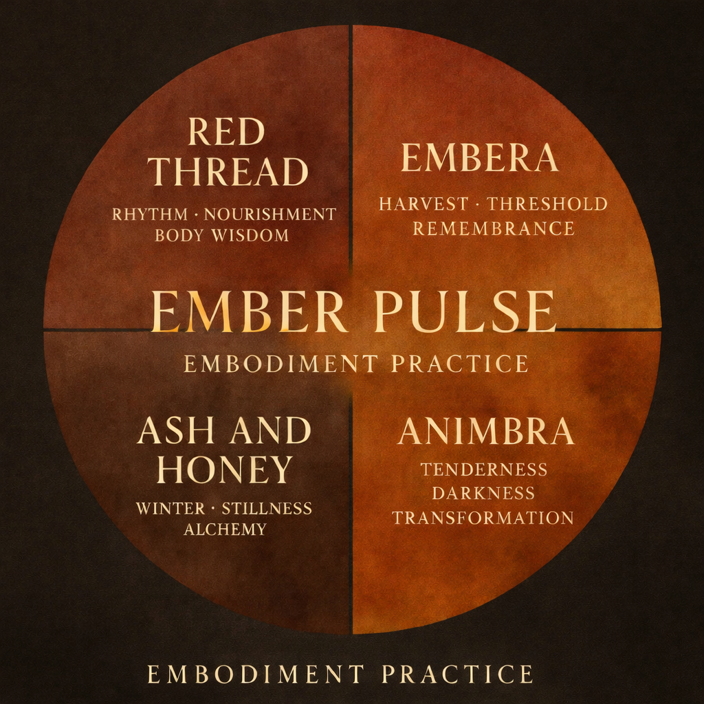 Ember Pulse refers to the small, living warmth that continues through cycles of change, and the pulse of life that guides us through movement and embodiment.